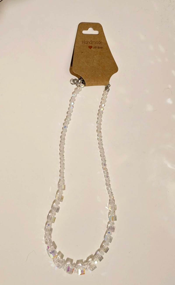 Iridescent square glass bead necklace with silver clasp - a lovely sparkly statement necklace