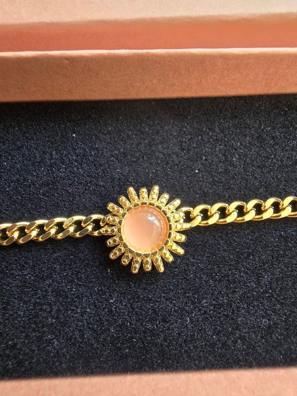 Beautiful sparkly gold-plated sun bracelet with orange coloured crystal