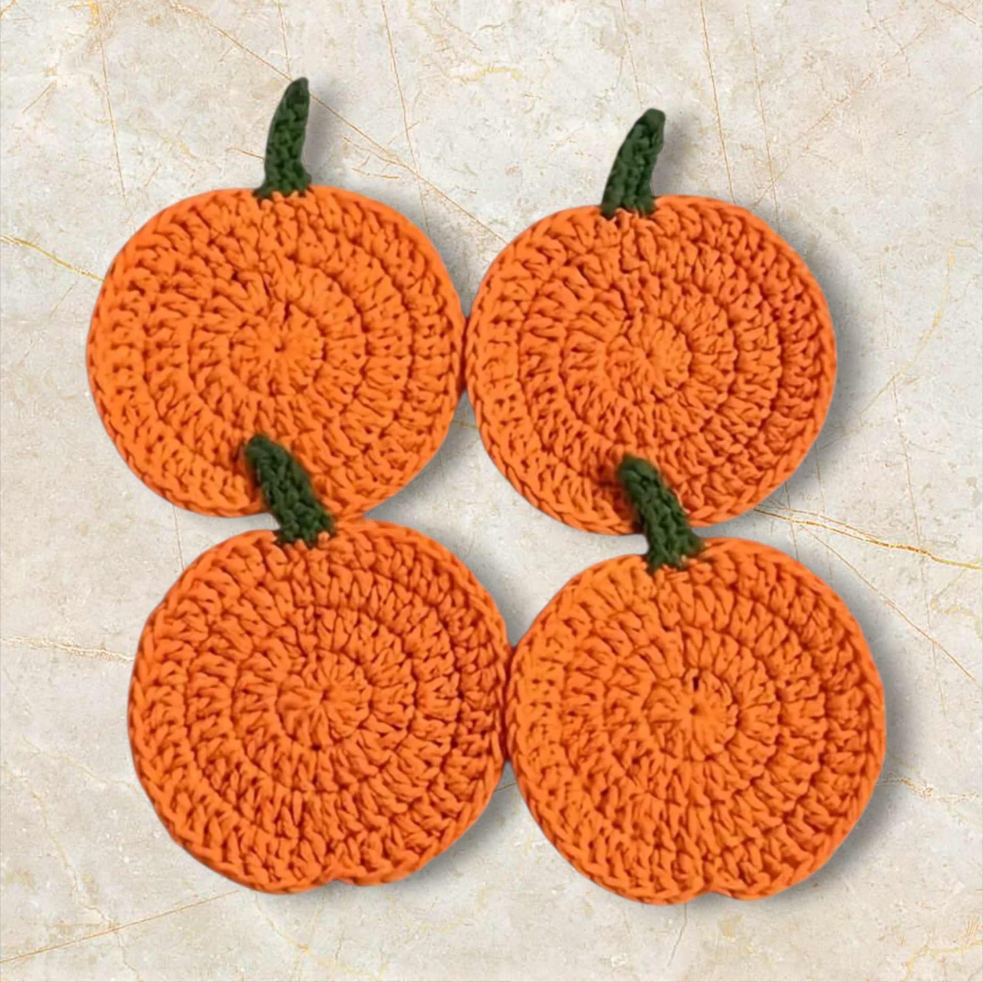 These handmade crochet pumpkin coasters come in a set of 4, perfect for adding a cosy, seasonal touch to your home.