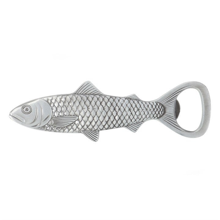 This novelty metal bottle opener comes tucked inside a mini sardine tin for a playful, nautical twist on a barware essential.